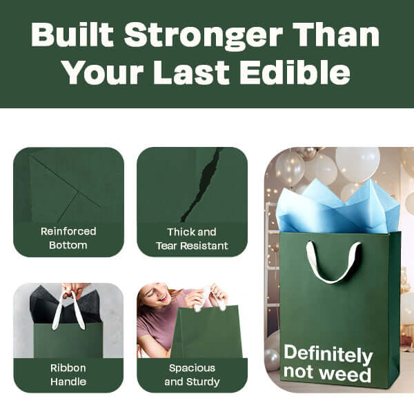 - This funny gift bag keeps the joke obvious with the phrase “Definitely Not Weed.” It’s simple, slightly suspicious, and usually gets a reaction before anyone even looks inside. The humor is straightforward, which is exactly why it works.