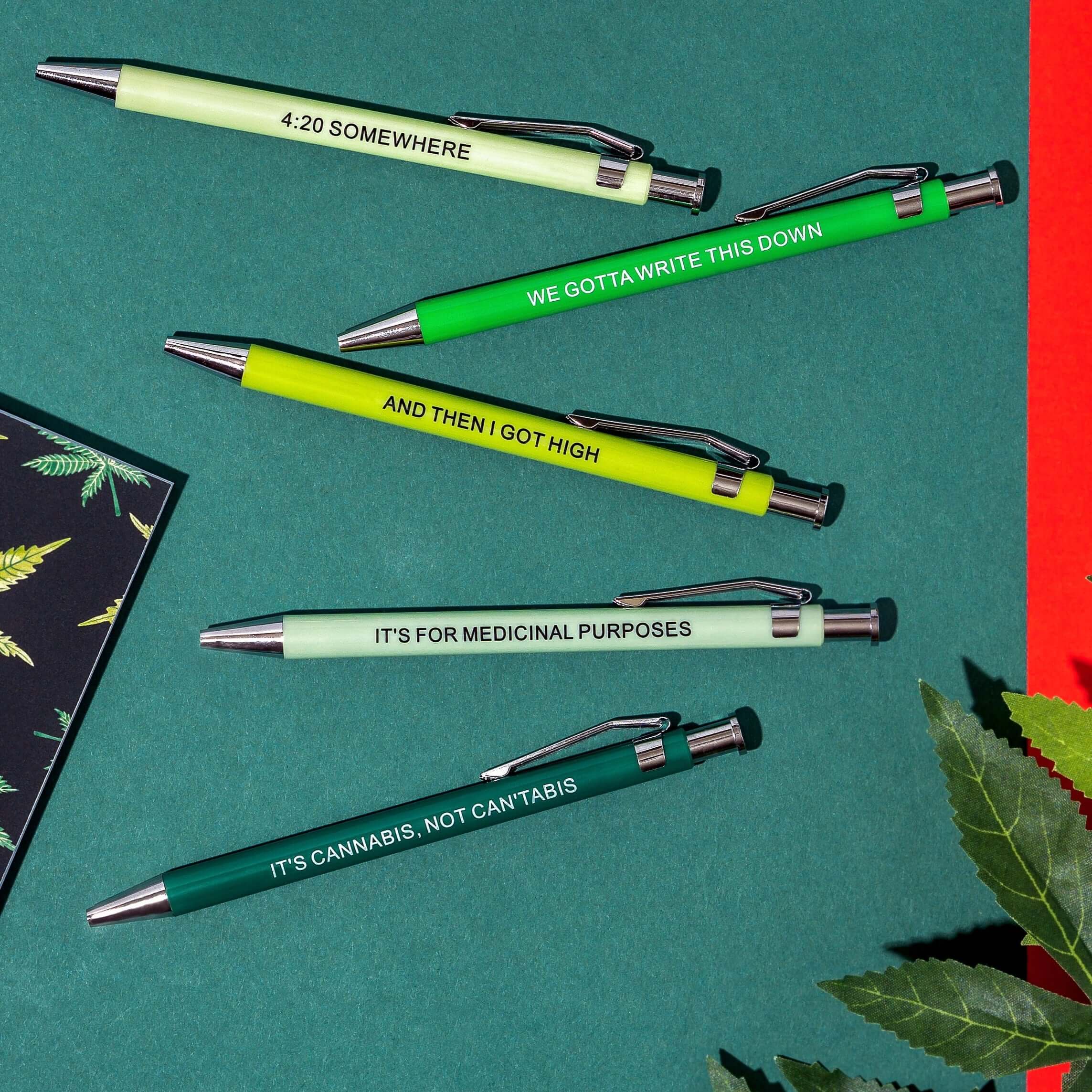 Please note: These are regular pens with funny sayings, they do NOT actually contain any pot, CBD, or THC. They're pens.